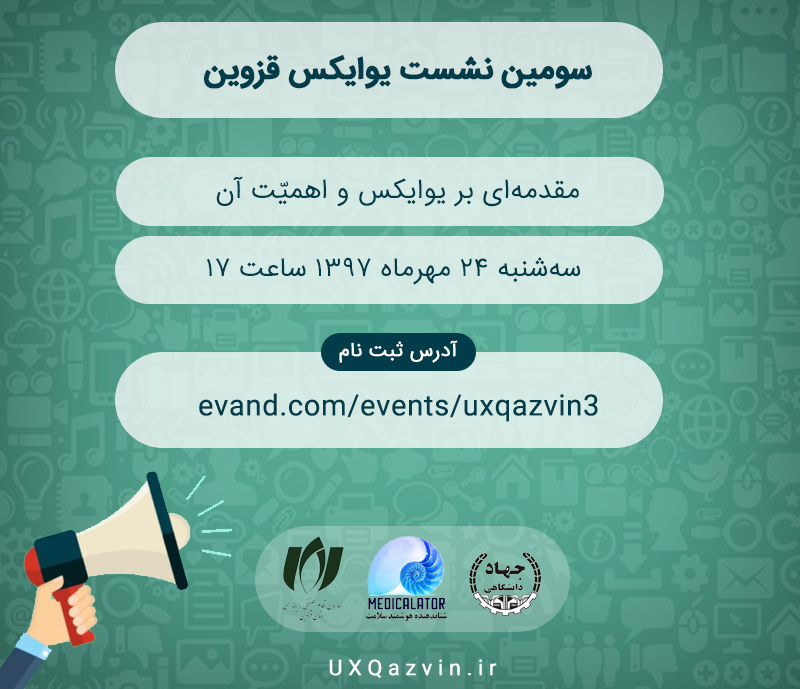 سومین نشست یوایکس قزوین با موضوع مقدمهای بر یوایکس و اهمیَت آن روز سه شنبه ۲۴ مهر ۹۷ برگزار خواهد شد.